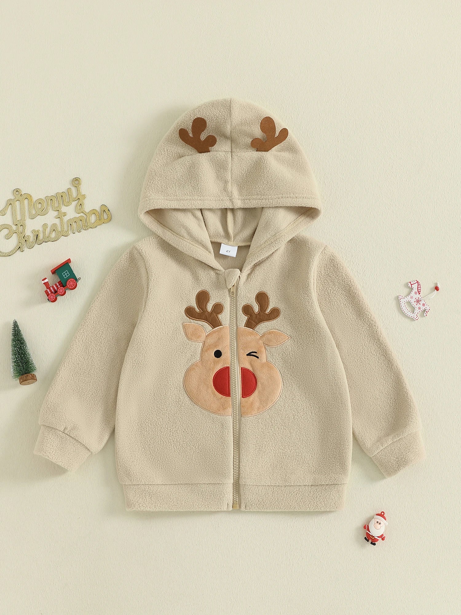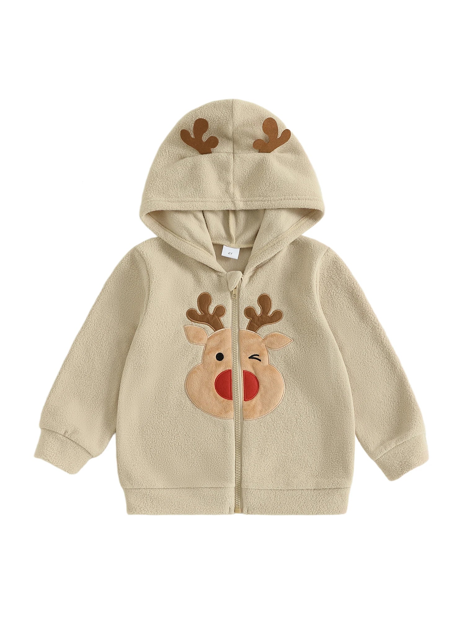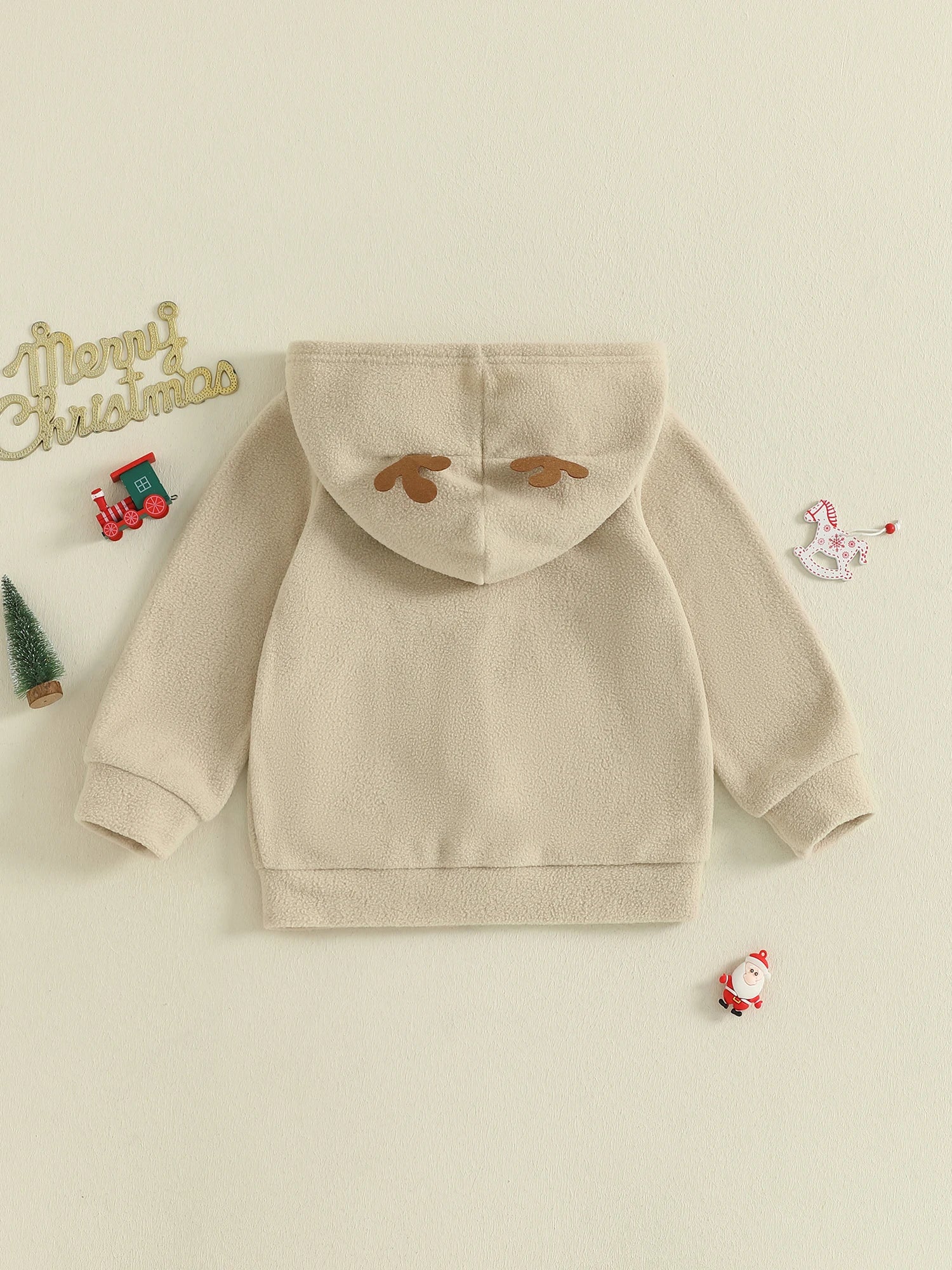 Toddler Baby Christmas Hooded Jackets Fashionable Reindeer Embroidery Long Sleeve Zipper Up Hoodie