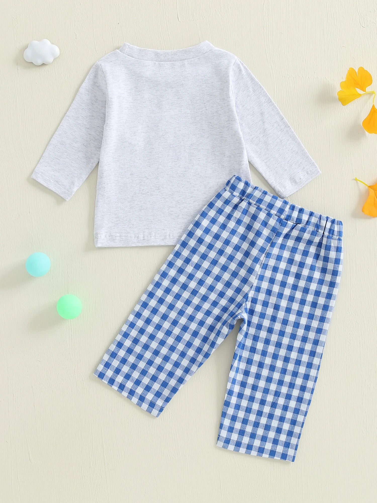 Toddler Boy Fall Clothes Golf Embroidery Long Sleeve Round Neck Pullover Elastic Waist Plaid Pants