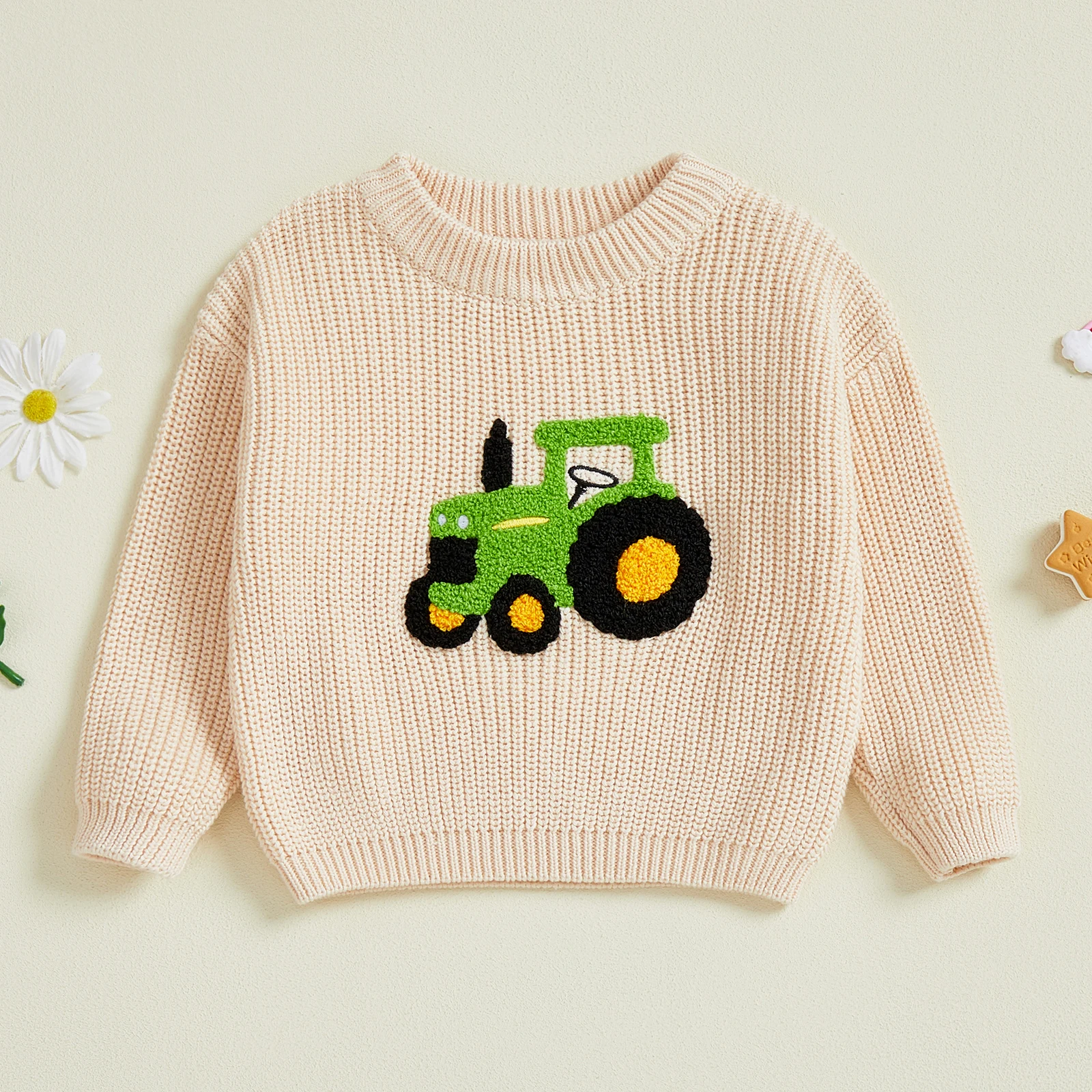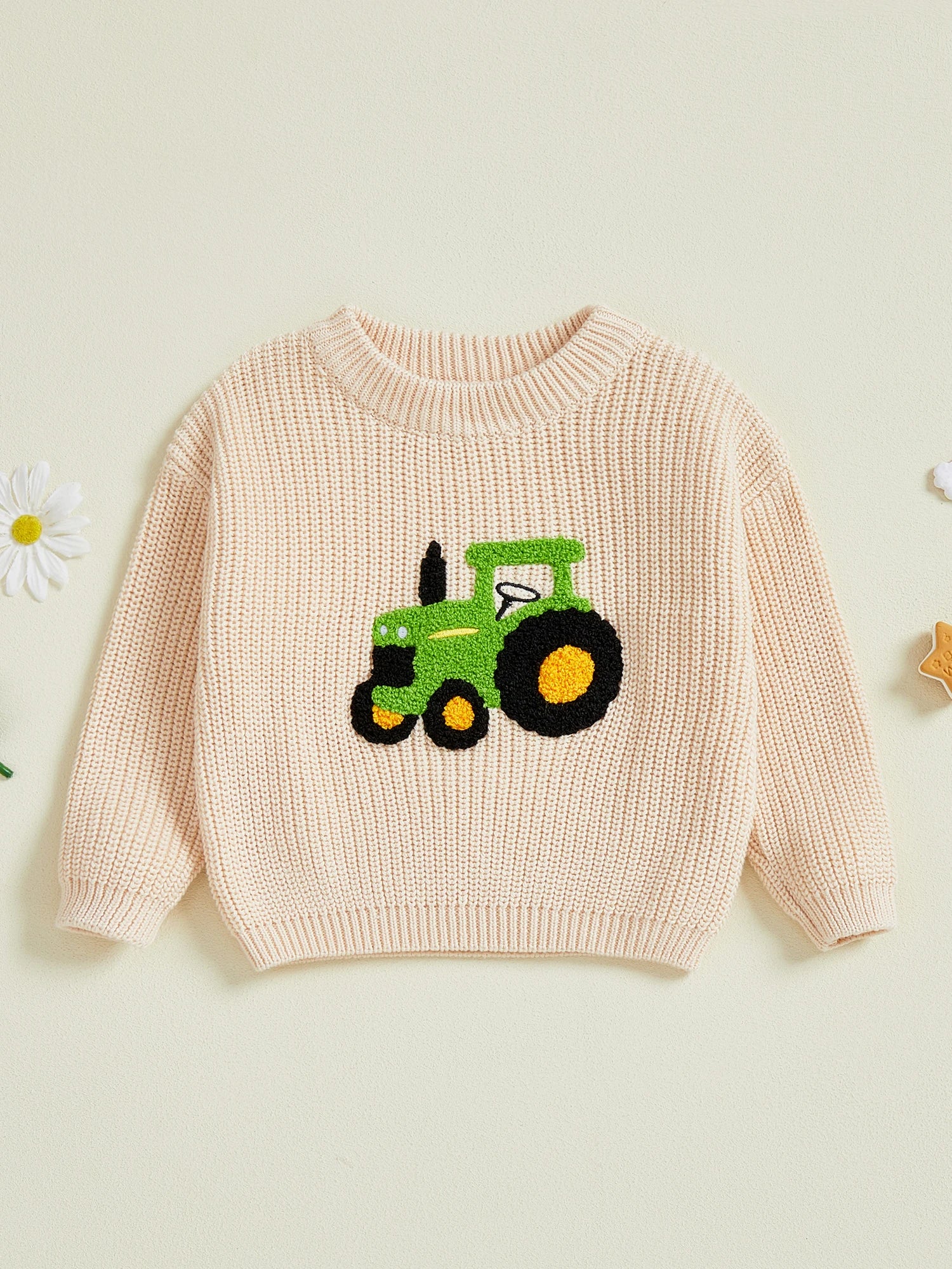 Infant Boy s Cozy Knit Sweater with Adorable Tractor Embroidery Long Sleeve Crew Neck Pullover for Newborns Cute and Casual