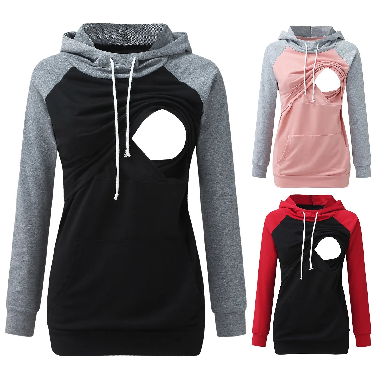 Womens Maternity Long Sleeve Nursing Tops Breastfeeding Hoodie Sweatshirt With Pockets