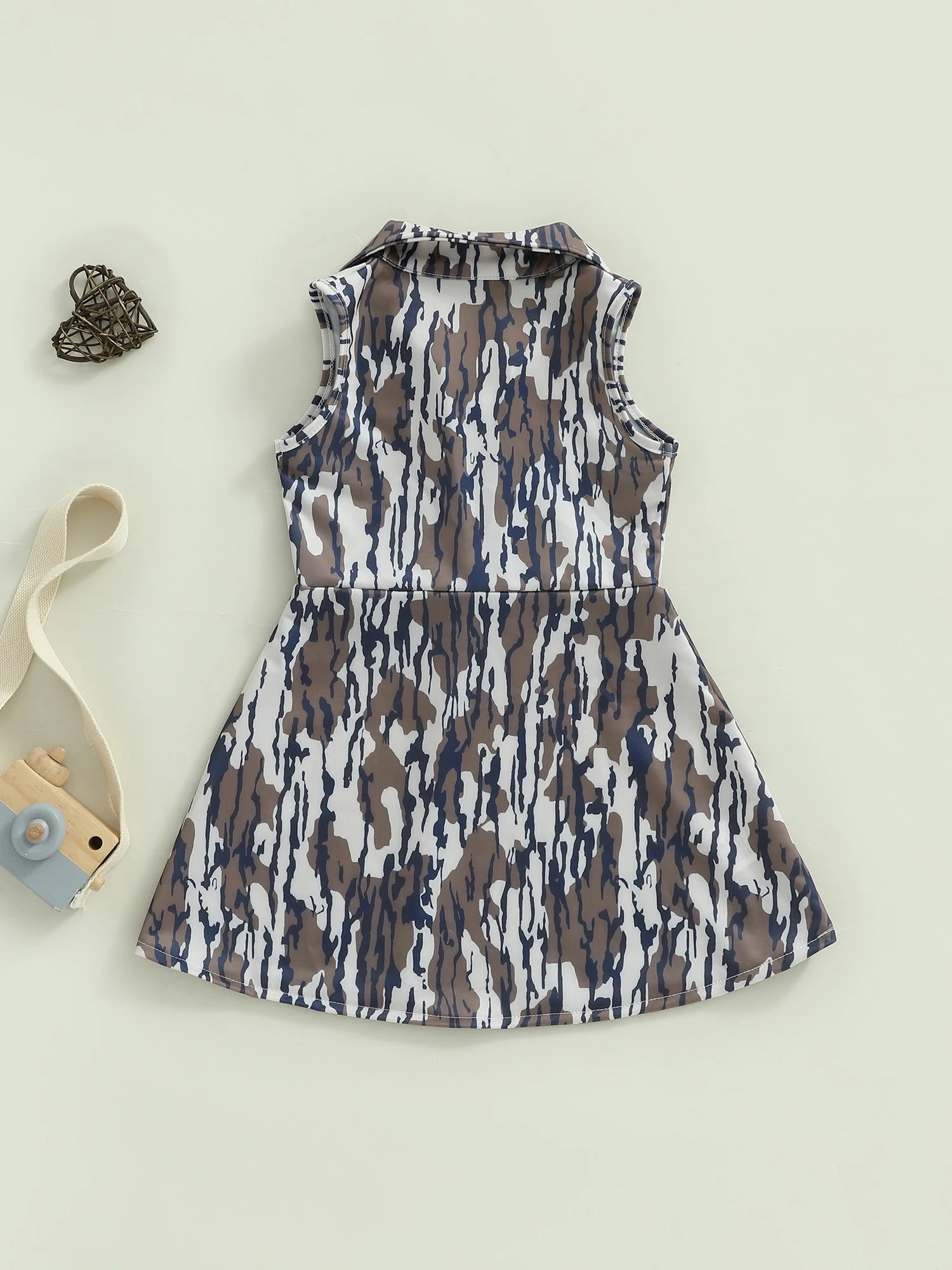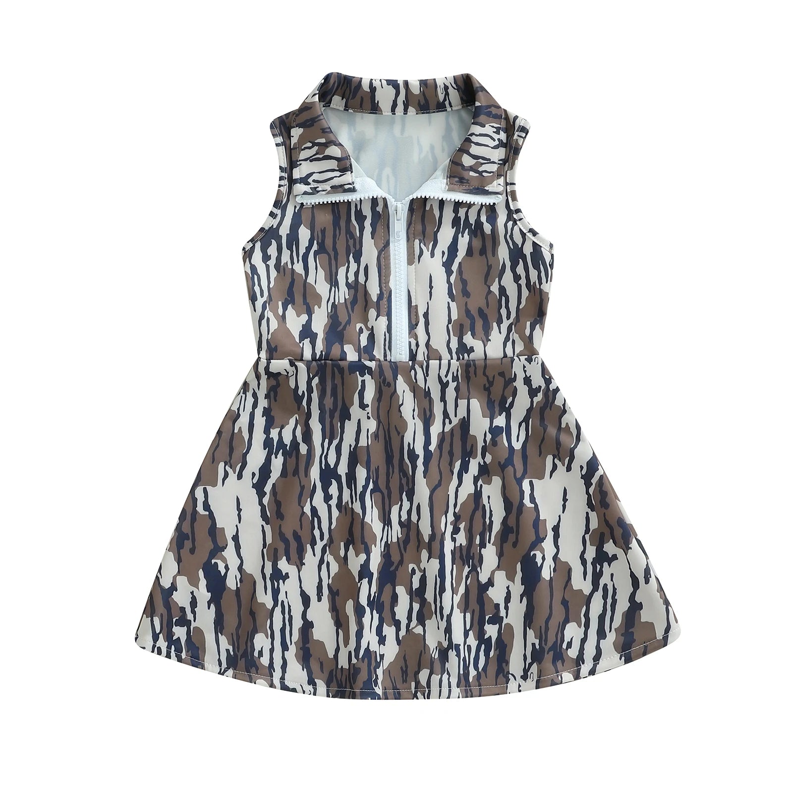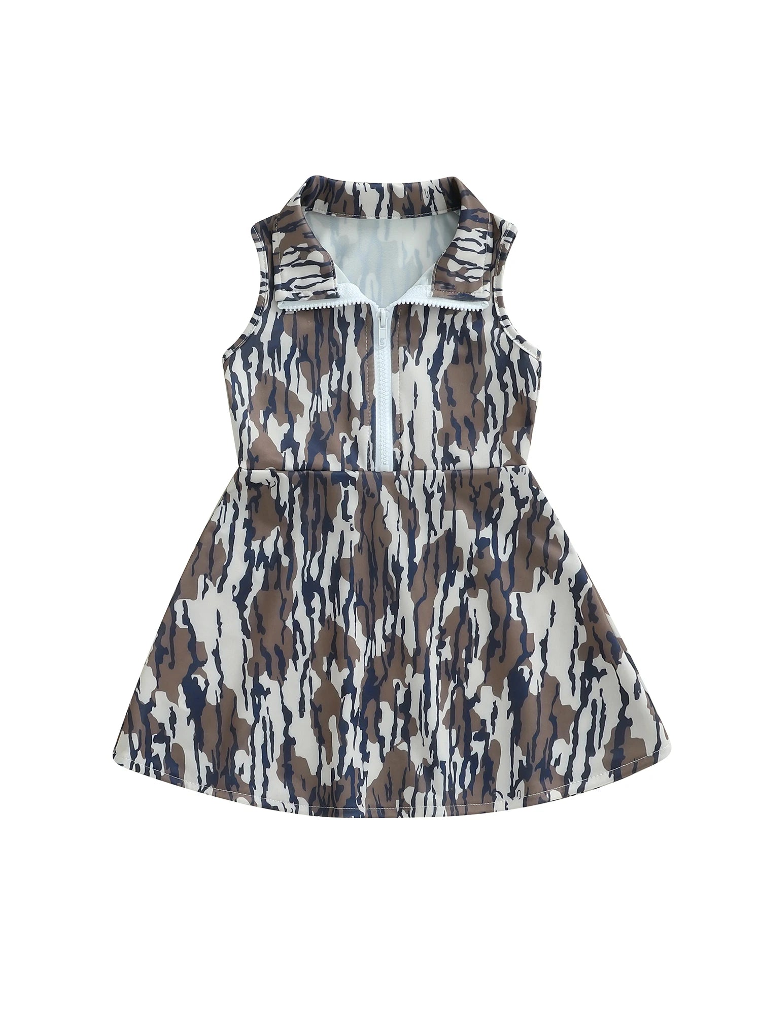 Little Girl Camo Tank Dress Half Zip-up Collared Sleeveless A-line Dress Casual Summer ClothesSize (cm)